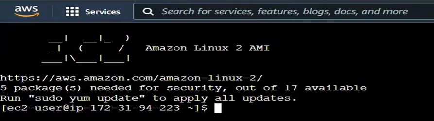 - The below output shows that you have successfully connected to your EC2 instance.