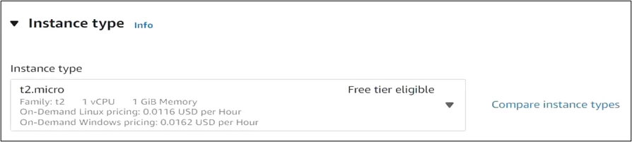 - Select Instance type i.e., t2.micro