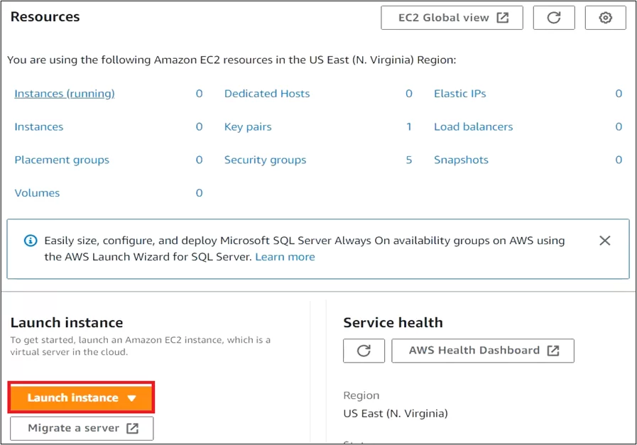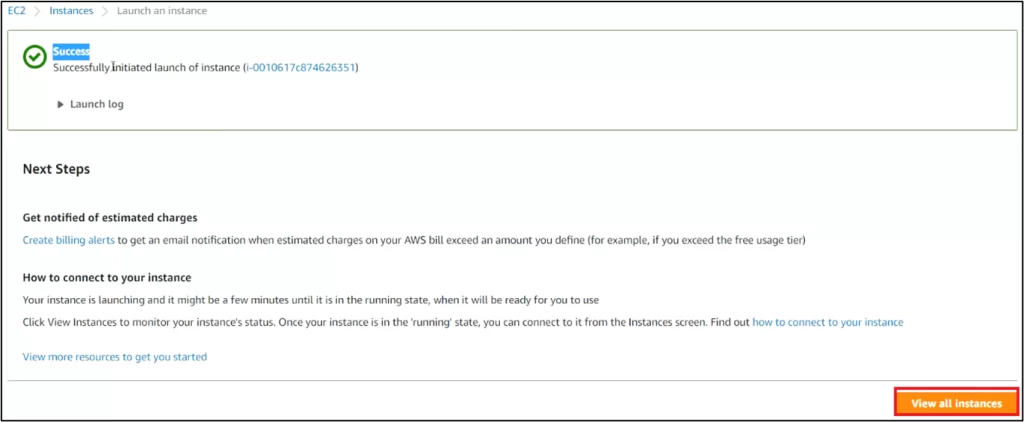 - Scroll down and click Launch Instance.
