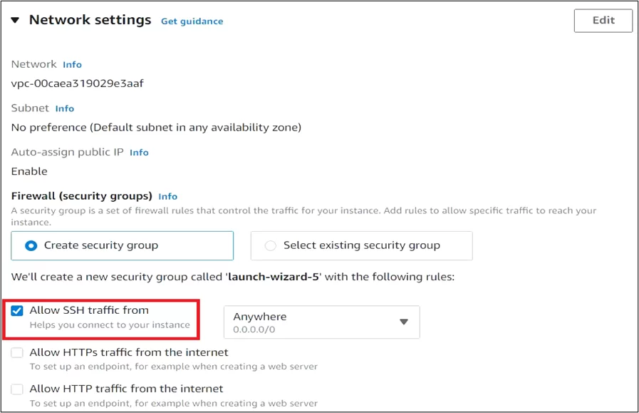 Key Pair: Create or import an SSH key pair to securely access your EC2 instance through SSH.